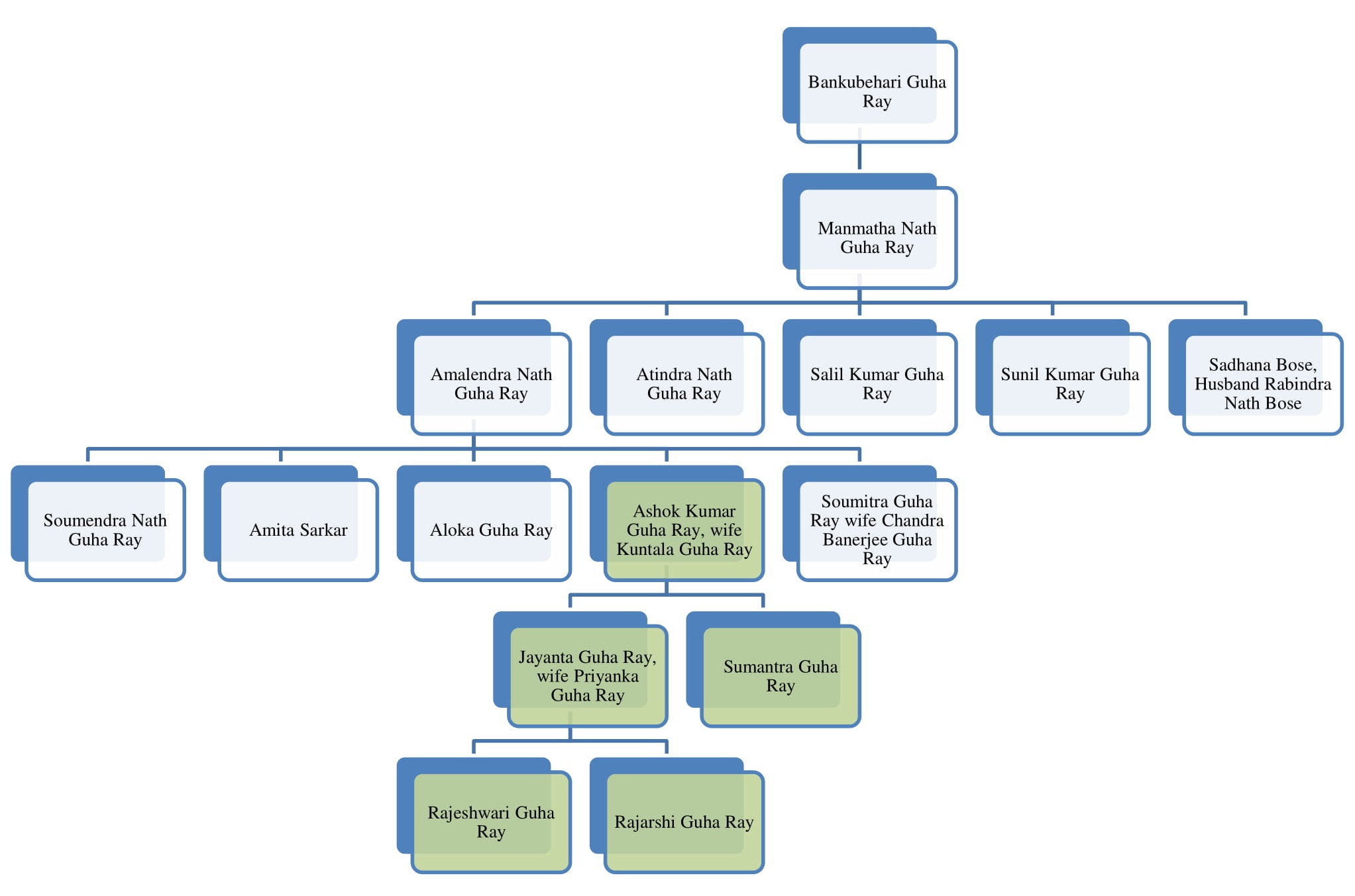 Guha Ray family hail from Kanchantala, in Jangipur sub-division in the district of Murshidabad. Their ancestral house was located on the bank of river Ganges. The predecessors of the Guha Ray family were employed with the then Nawab of Murshidabad, Murshidkali Khan. They continued in the employment of the Nawab till the time of Sirajudullah. Since they hold important posts in the court of Alibardi Khan, they were much favoured for their efficient service to the Nawab and was awarded a Jamindari in Kanchantala and also in Dhulipahari of Santhal Parganas. The family goddesses of Guha Ray family still is Mangal Chandi who was worshipped in Kanchantala and Kalimata in Mirjapur in Jangipur. The family goddess, Mangal Chandi had vast properties as 'Debottor Sampati' for her worshipping expenses.
